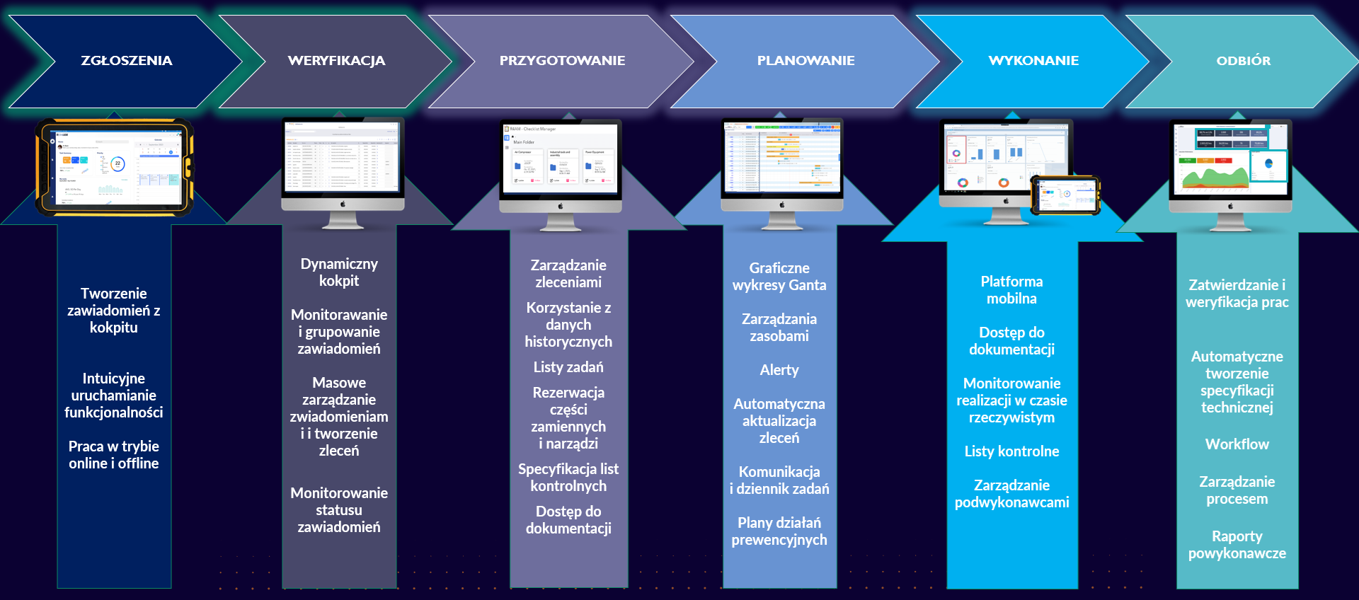 Nasza unikalna platforma koncentruje się na konkretnych procesach, które pomogą Ci zarządzać kompleksowym procesem utrzymania majątku technicznego. Rozwiązanie Ready4 Asset Management zostało zaprojektowane z myślą o uproszczeniu i cyfryzacji procesów utrzymania oraz serwisowania zasobów. Dowiedz się, co obejmuje Ready4 Asset Management.